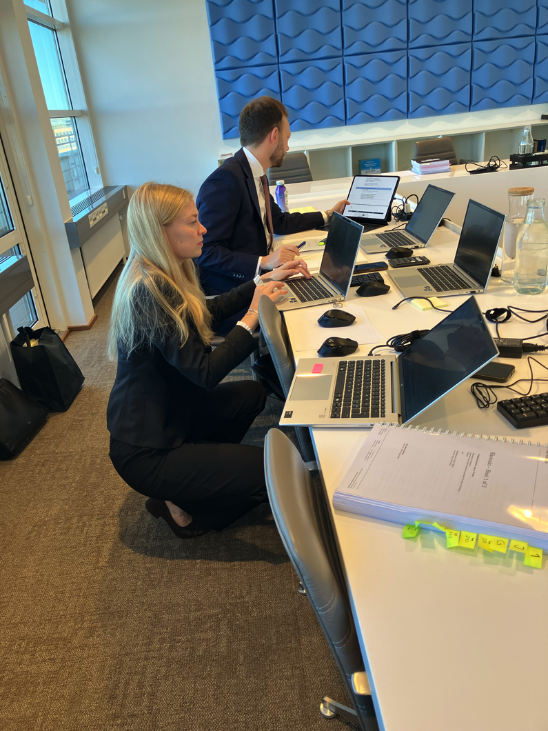 Advokaterne Søren Henriksen og Julie Skovbo Erhardsen fra Gorrissen Federspiel arbejdede hårdt under voldgiftssagens hovedforhandling i august. Foto: Hans Drachmann.